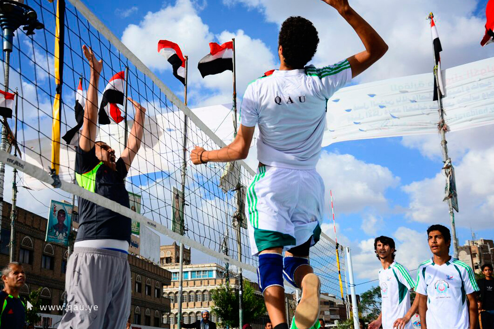 انطلاق البطولة المفتوحة لكرة الطائرة بميدان التحرير في صنعاء برعاية جامعة الملكة اروى