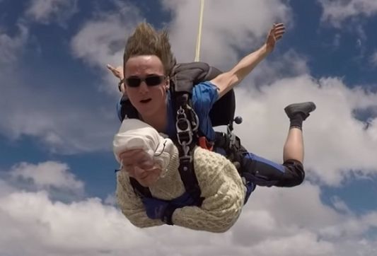 عجوزة بعمر 102عام تقفز بالمظلة من علو 4000 متر! (فيديو)