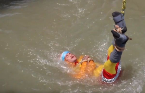 ساحر يختفي في نهر بعد ان قفز مقيدا بالسلاسل لتنفيذ خُدعة