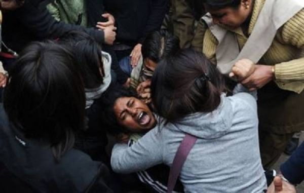احراق امراة بينما كانت متوجهة الى جلسة محاكمة المتهمين باغتصابها