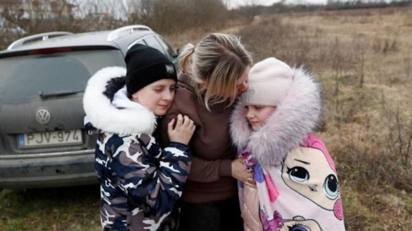 شاهد – اوكراني يائس يسلم طفليه الى سيدة لا يعرفها على الحدود