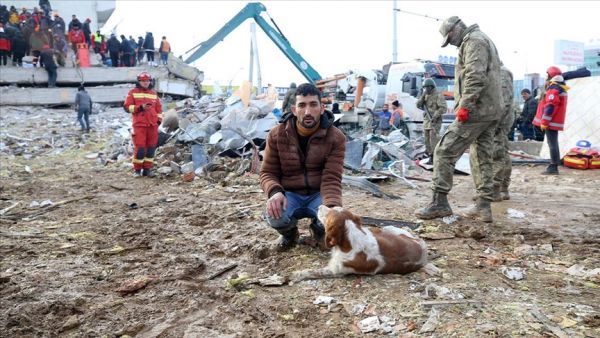 مواطن تركي يشارك مع كلبه في عمليات العثور على الناجين من الزلزال