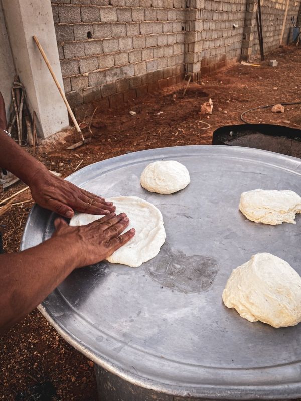 جدة سورية تصنع خبز التنور لتعيل احفادها اليتامى